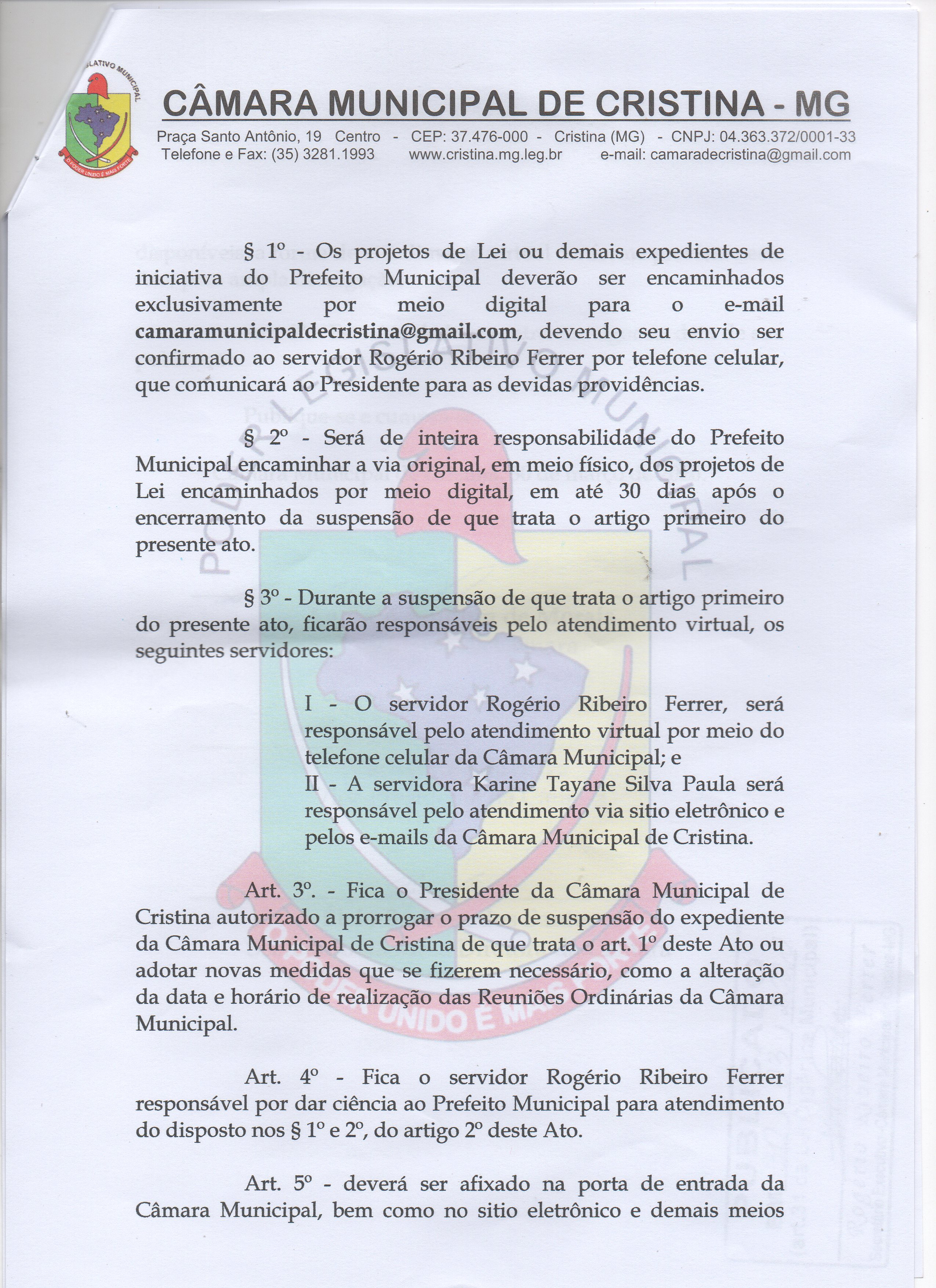 Câmara Municipal de Cristina - MG