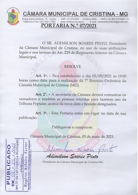 Câmara Municipal de Cristina - MG