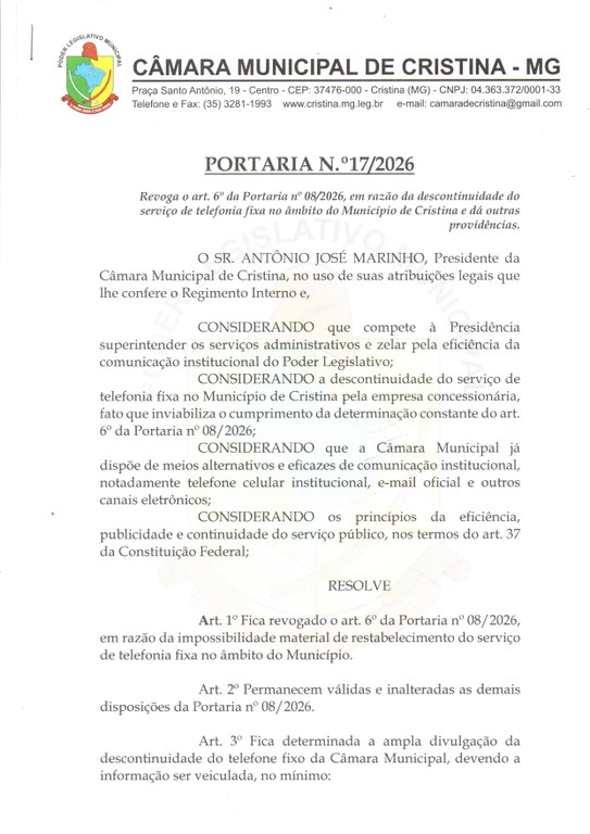 • Carta de Serviços da Câmara Municipal de Cristina
